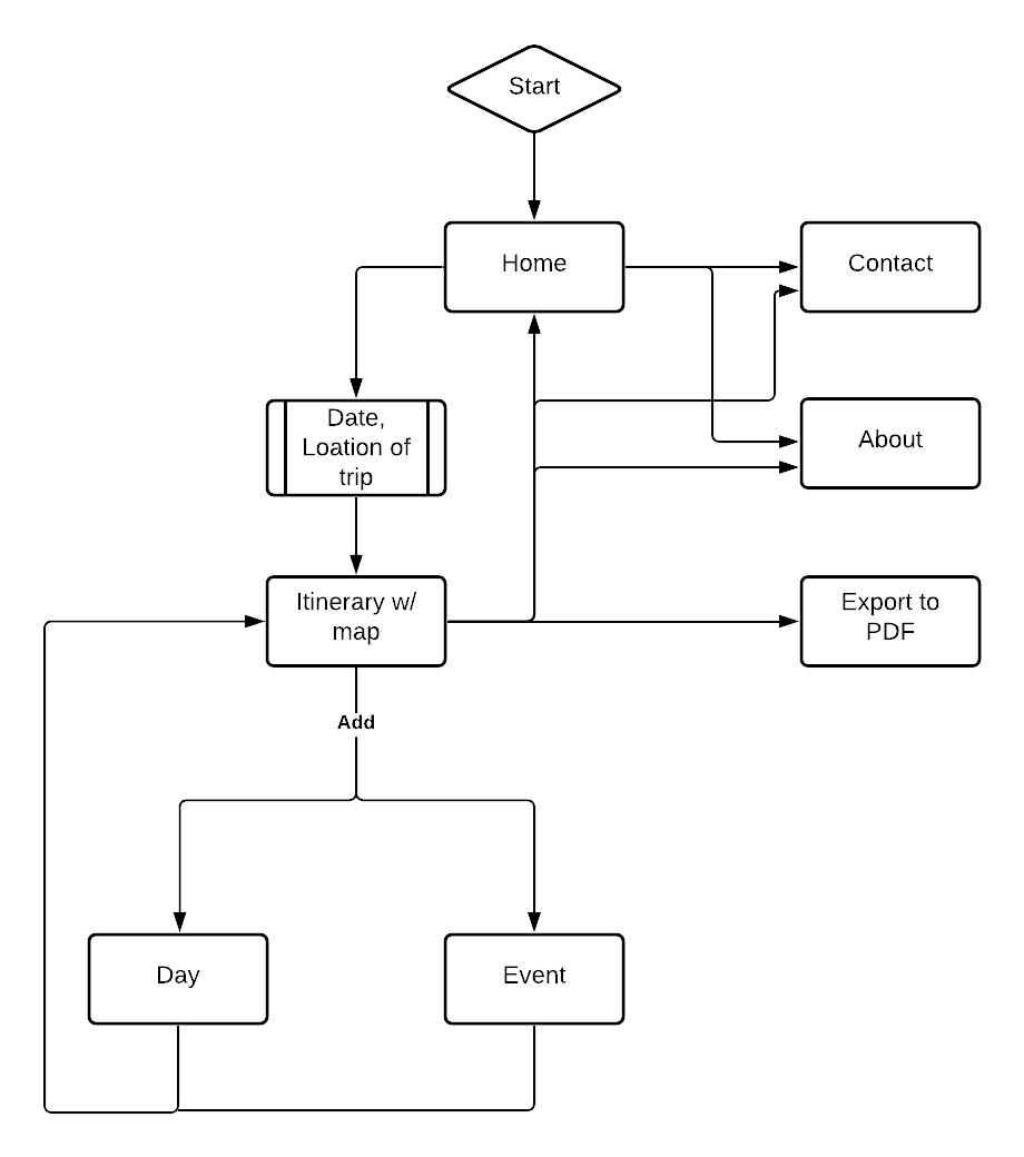 To get a better idea of core features to itinerary planning web apps, I looked at six different websites: Tripit, Pebblar, Google Trips, Google My Map and Sygic Travel: