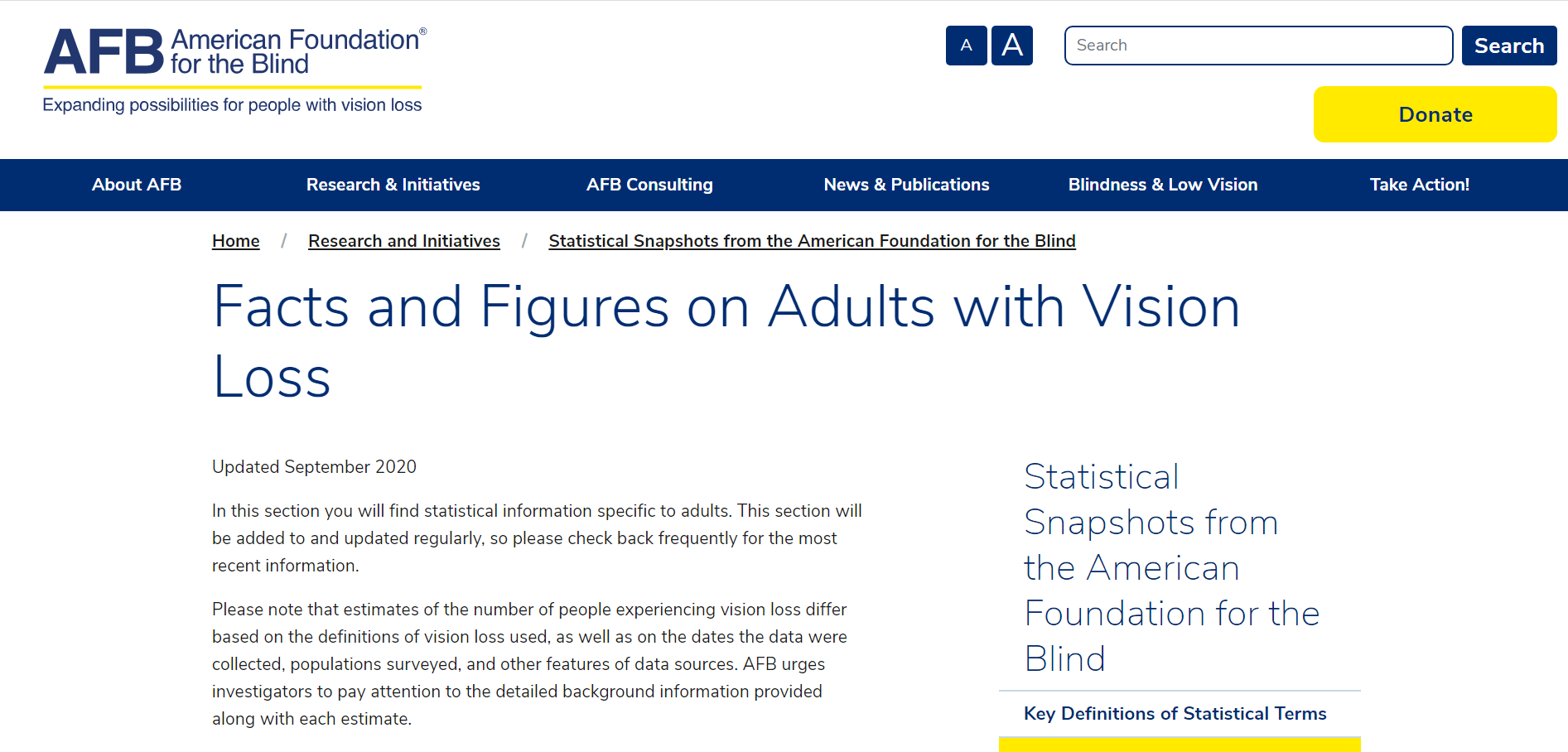 32.2 million Americans over the age of 18 reported that they are visually impaired even with glasses or lens. This number will double by 2030.