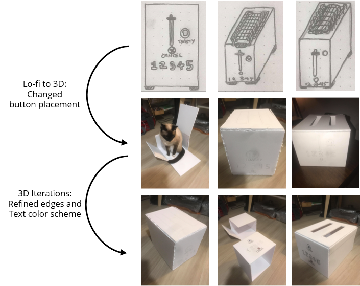 After lo-fi prototype testing, I designed 3D prototypes and conducted user testings. After conducting user tests, I refined my design to better address user pain points.